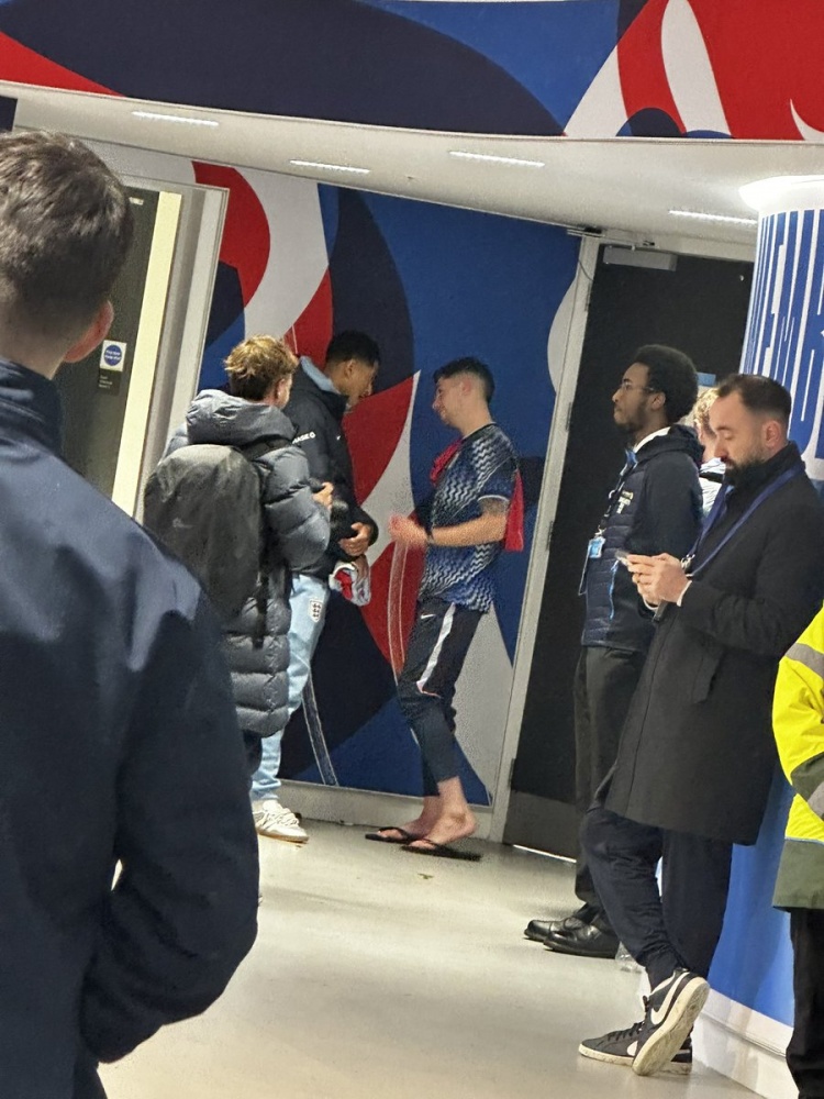 赛后贝林厄姆与巴尔韦德见面,两人在混合采访区聊天。